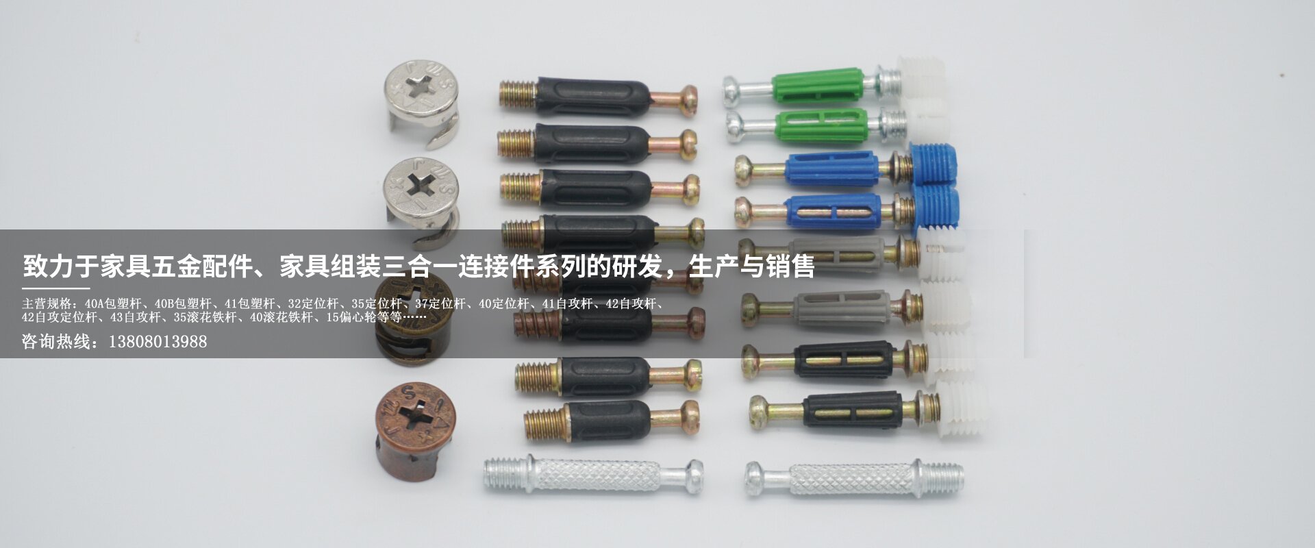 成都市聯盛五金制品有限公司成立于2012年,現擁有廠房面積16000平方米,主要從事家具五金配件、家具組裝三合一連接件系列的研發,生產與銷售。公司目前主營產品:家具組裝三合一包塑桿、定位桿、鐵桿、滾花鐵桿、雙頭桿、木牙螺絲、板托中軸、隔板釘等。